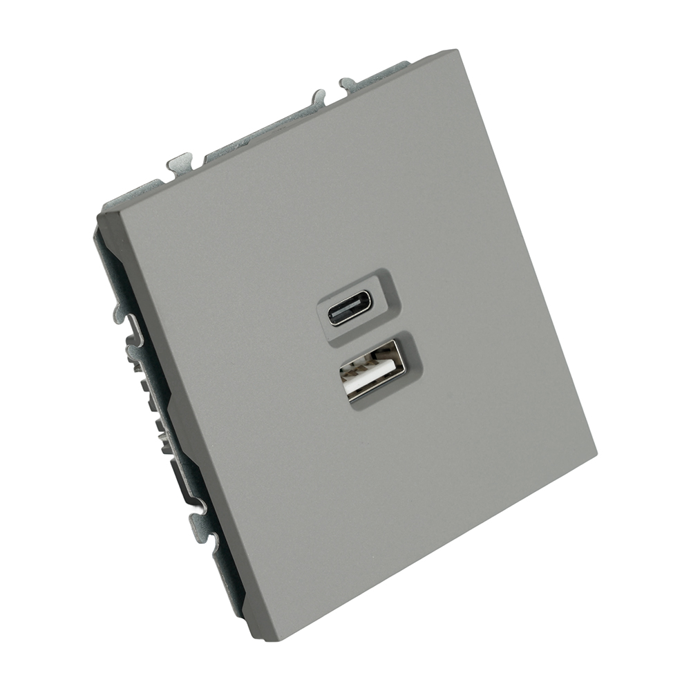 Розетка PC+Type A+C 20W ЭМИЛИ платиново-серый RST10-5115-10