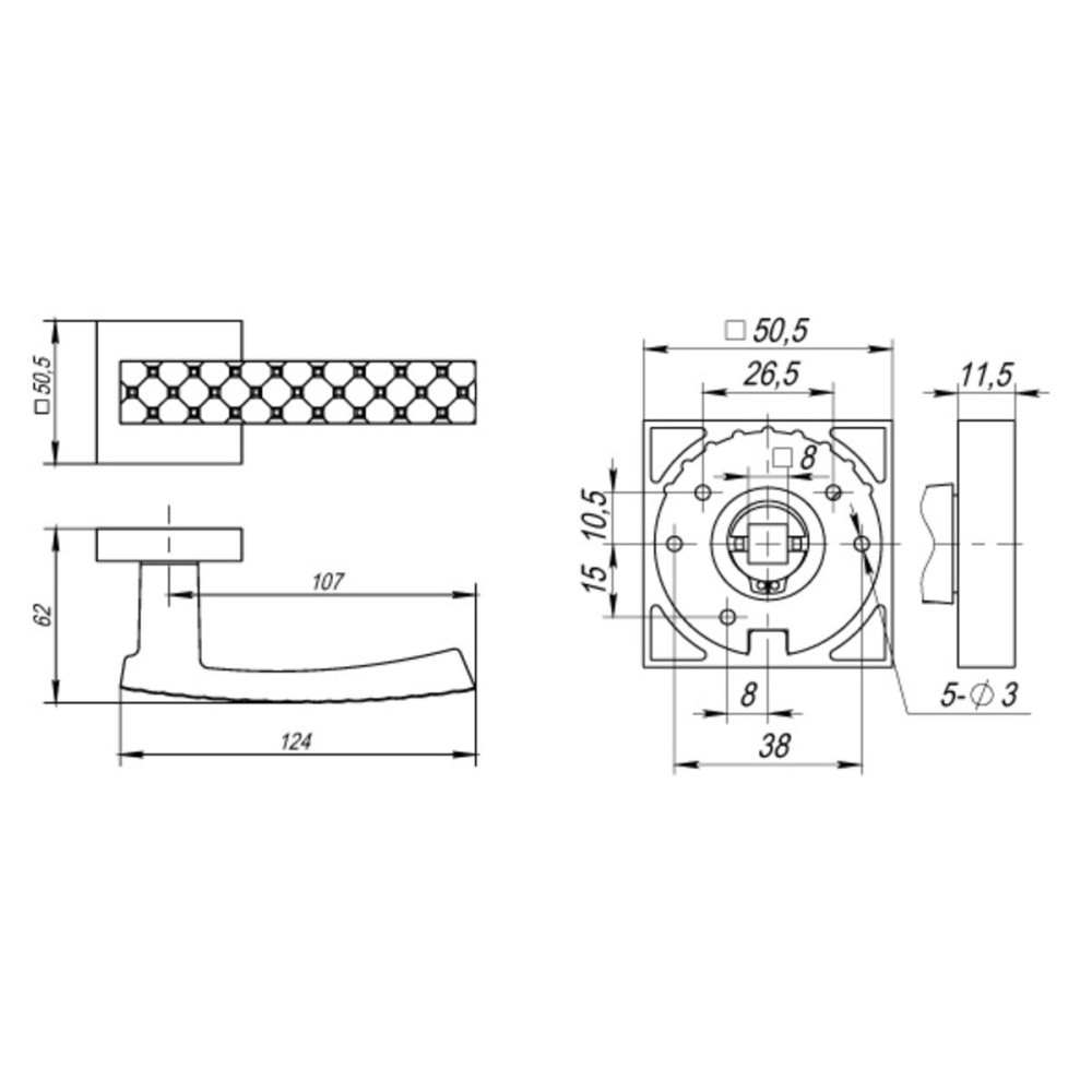 | Толщина дверного полотна35 - 55 мм | Форма розеткиквадратная | Вес, кг0,85 |