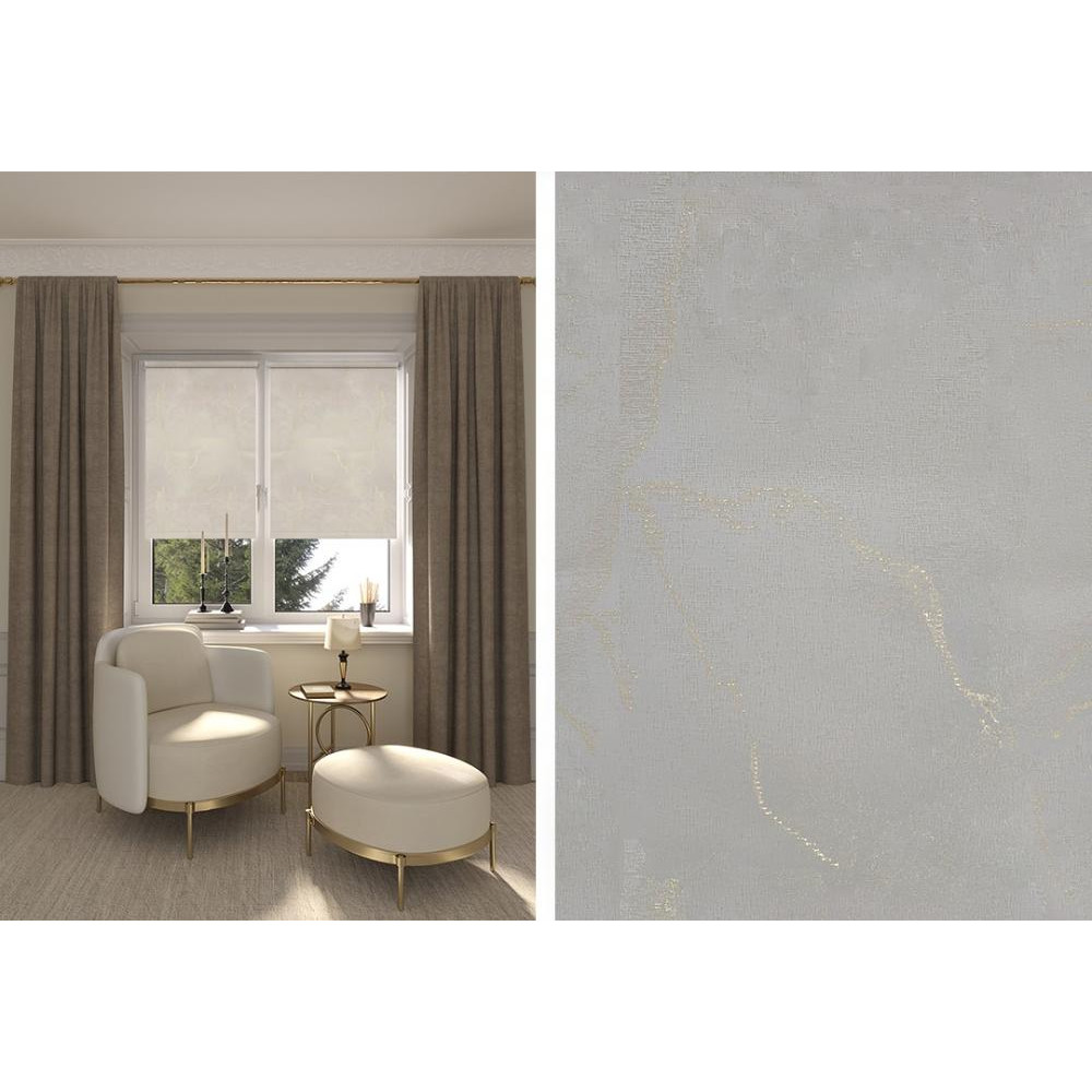 Уникальная текстура разреза мраморного слэба воплощена в рулонных шторах коллекции Фавор. Оригинальное оформление узкой полоской золотой или серебряной нитью разреза мраморного слэба, делает коллекцию неповторимой. Оригинальное решение для изысканных и утонченных интерьеров. Вешать рулонные шторы можно с плотными портьерами, с тюлем или как самостоятельный элемент.