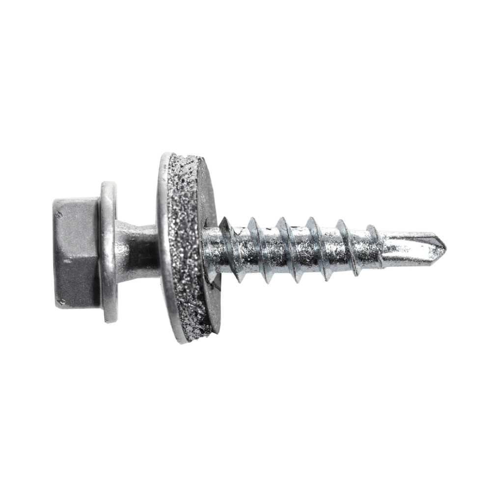 Кровельный саморез представляет собой крепежный элемент с шестигранной головкой, плоской металлической шайбой и уплотнителем из прочного синтетического каучука EPDM. Наконечник в виде бура позволяет выполнять работы без предварительного сверления. Изделие предназначено для работ с кровельными покрытиями, а также для крепления профилированного металлического листа к каркасам и металлоконструкциям.