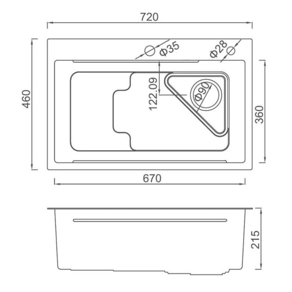 Форма чаши мойки прямоугольная