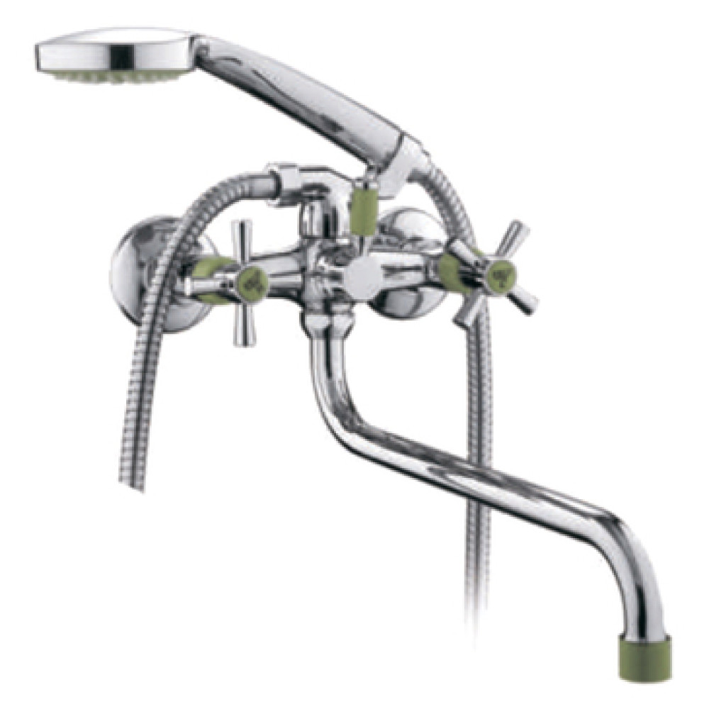 Смеситель для ванны FRUD R22118-6 керам. кран-букса встр. диверт, ручка крест, зелен/хром