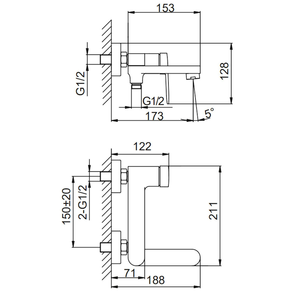| Длина излива153 | Длина шланга1500 мм | Количество монтажных отверстий2 |