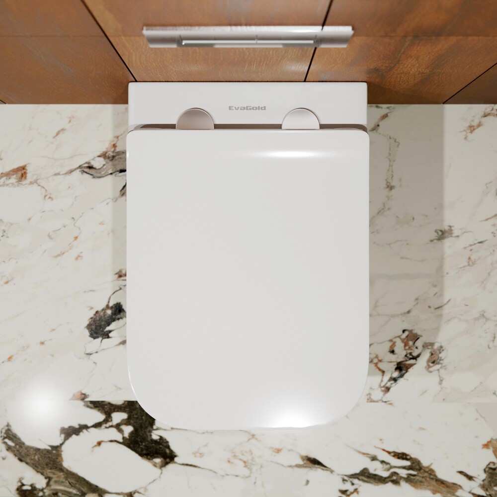 Унитаз-подвесной EVA GOLD K634 белый, сид. дюропласт тонкое, безободковый