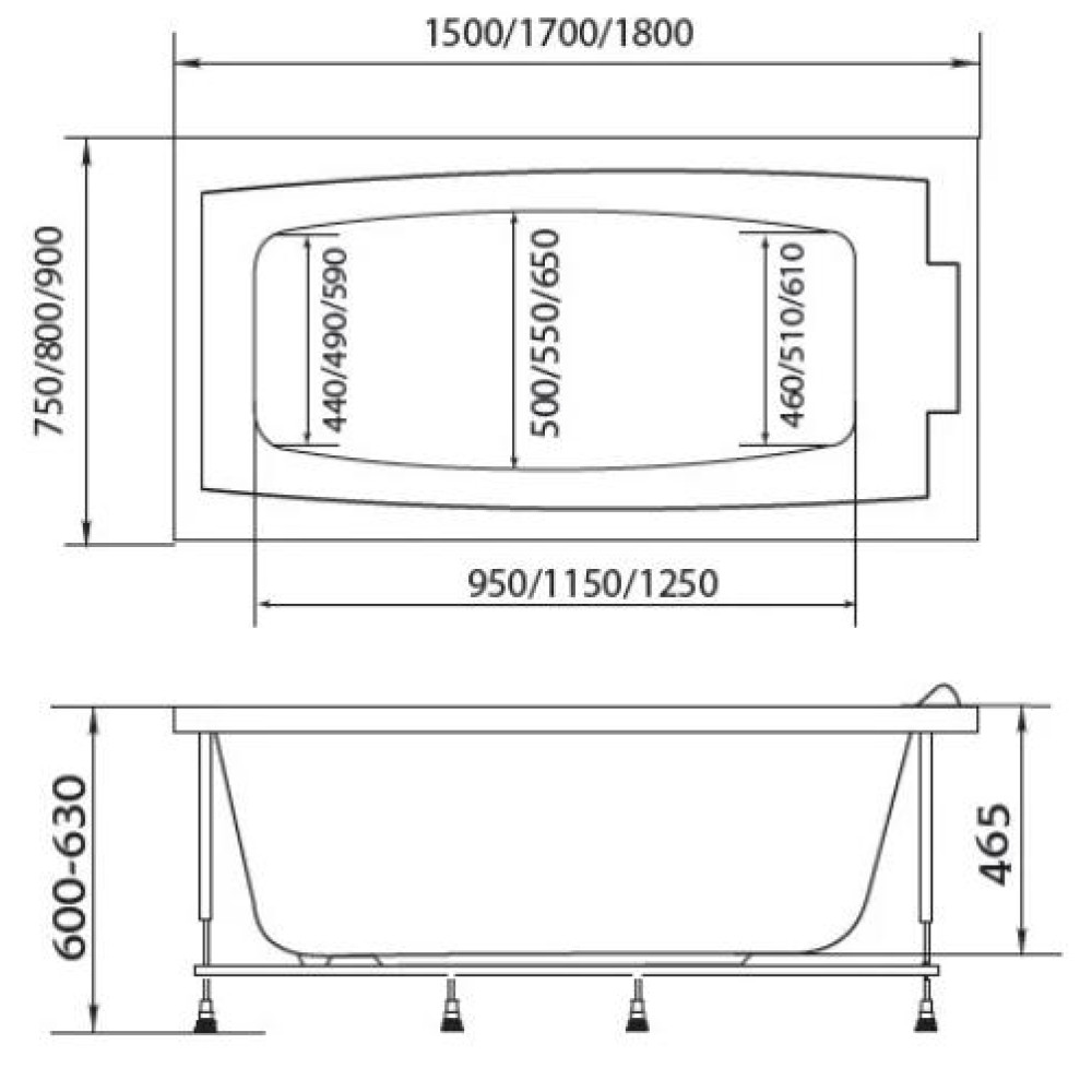 Технические характеристики Ванна акриловая 1Marka Aelita 170х90см на раме + фронтальная панель