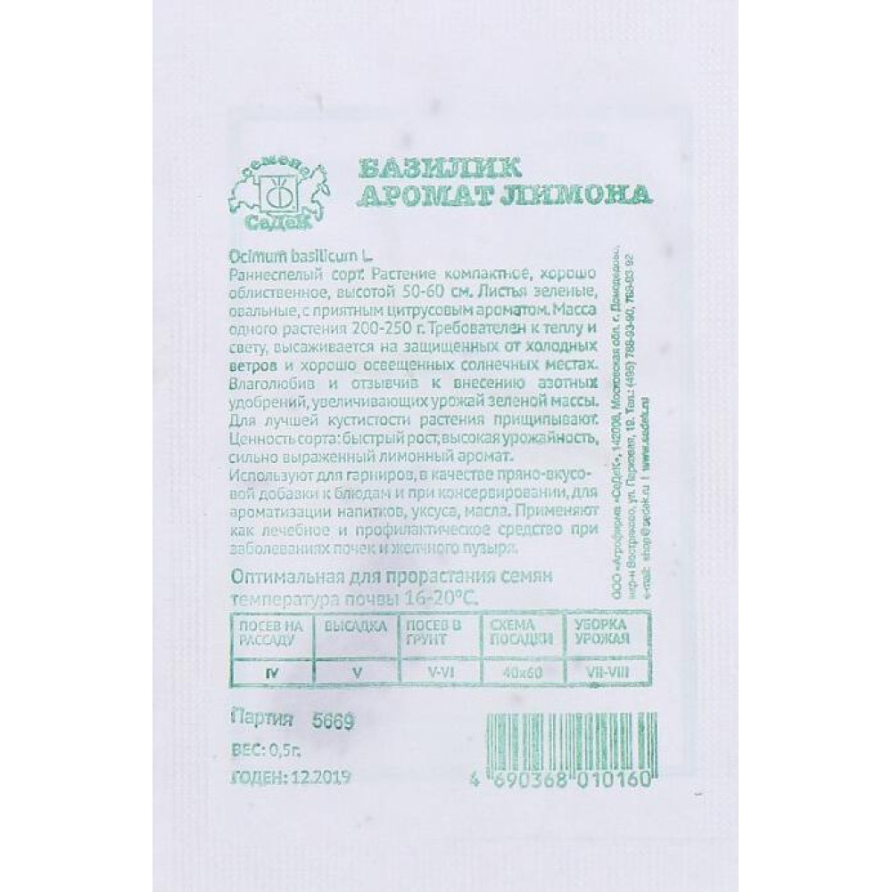 Технические характеристики Семена Базилик Аромат лимона (145233)