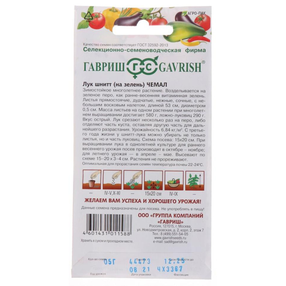 Семена Лук шнитт Чемал на зелень - зимостойкое неприхотливое растение. Выращивается в многолетней культуре. Этот лук дает возможность использовать в пищу витаминную зелень почти сразу после оттаивания почвы.