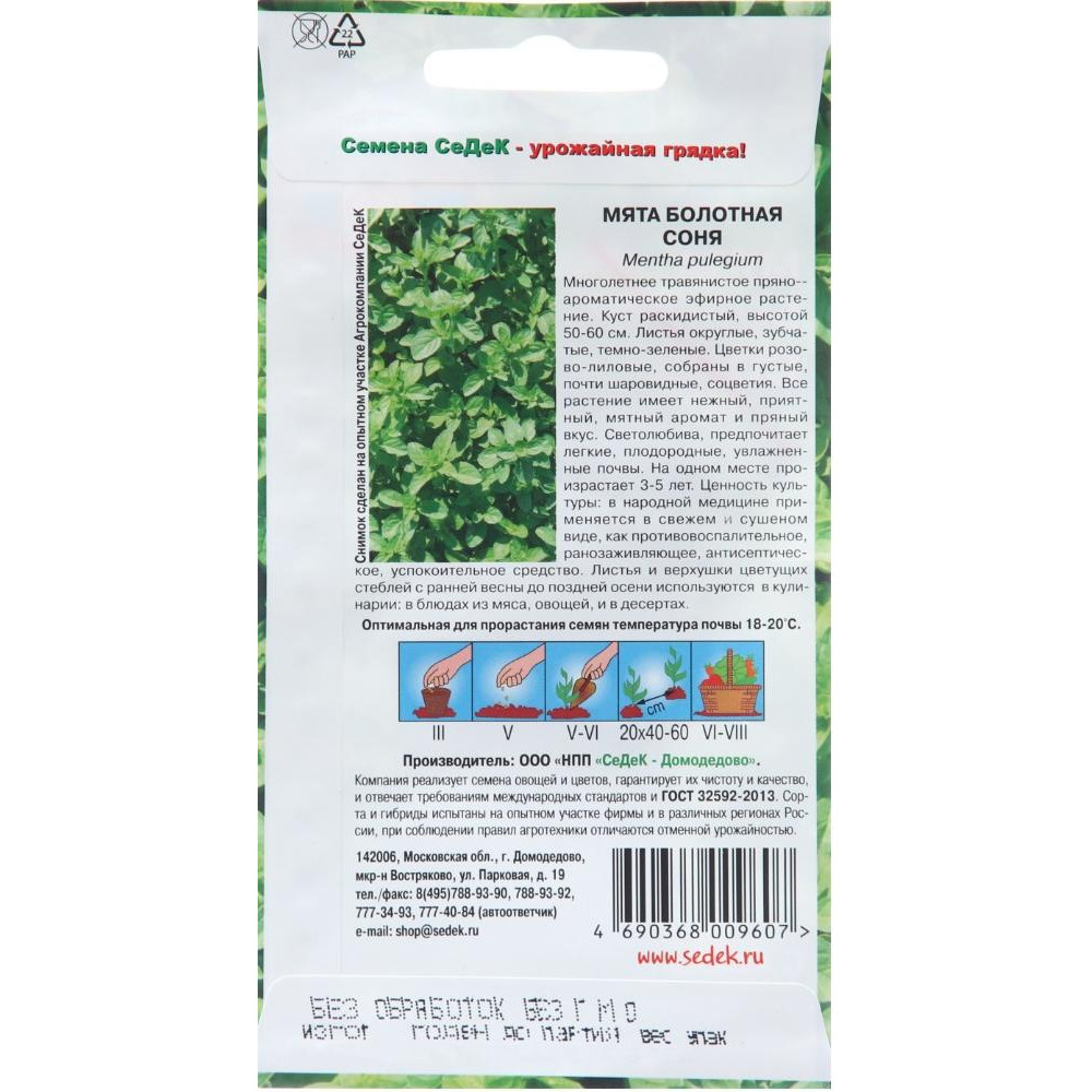 Технические характеристики Семена Мята Болотная Соня (491081)