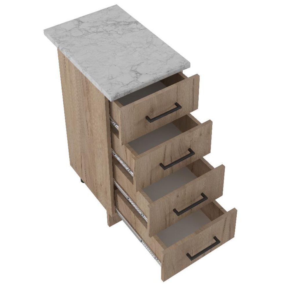 Тумба EVA GOLD 40 дуб бунратти (4 ящика) - это функциональный и стильный элемент интерьера вашей кухни. Изготовленный из качественных материалов, этот стол обеспечит долговечность и надежность в использовании. Стол имеет небольшие размеры, что позволяет разместить его даже на небольшой кухне.
