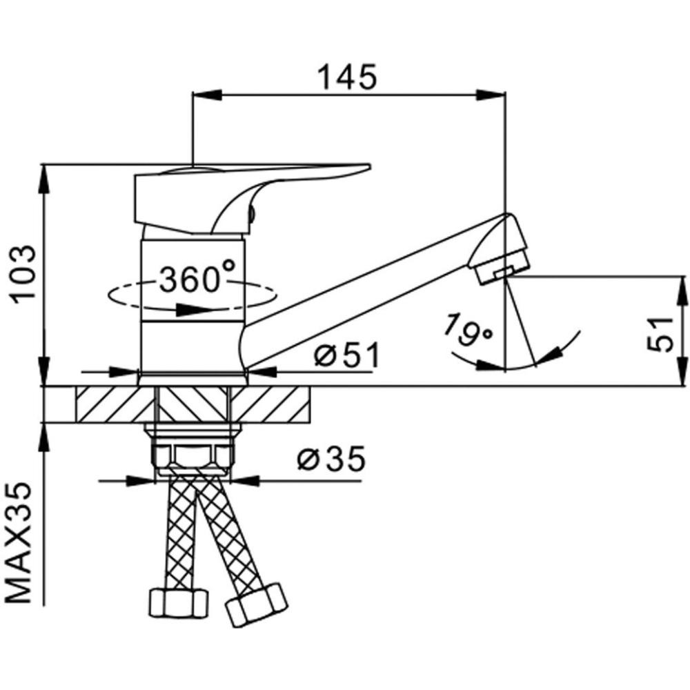 | Типсмеситель для умывальника | Аэраторда | Высота излива51 мм |