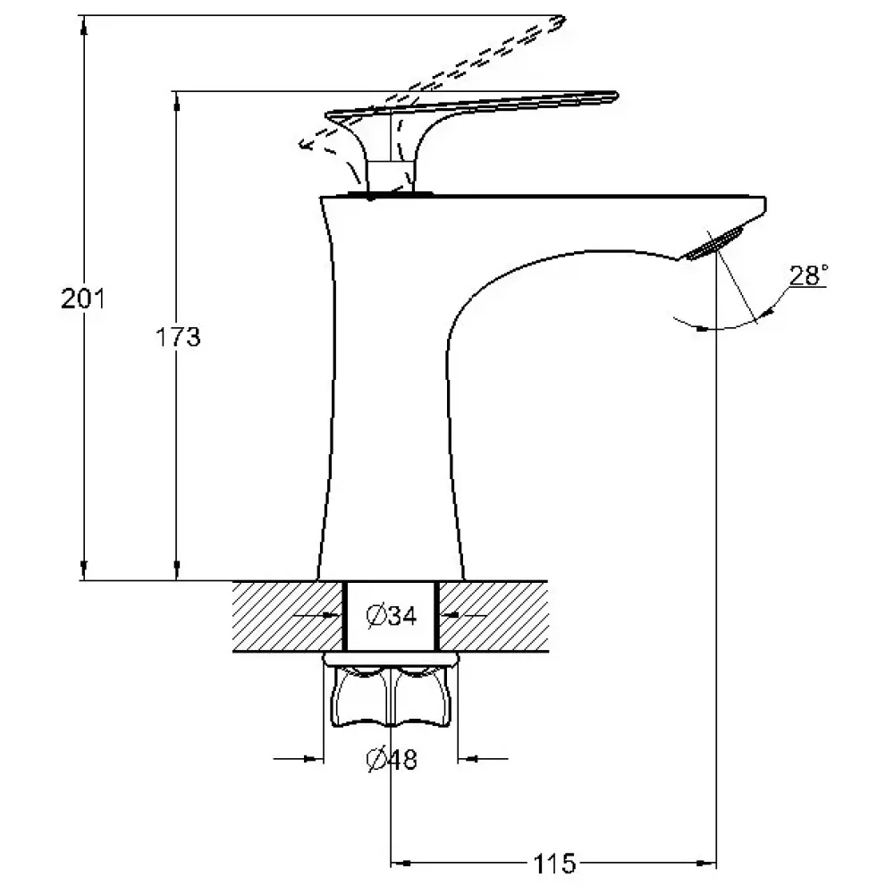 Типсмеситель для умывальника Аэраторда Высота излива173 мм