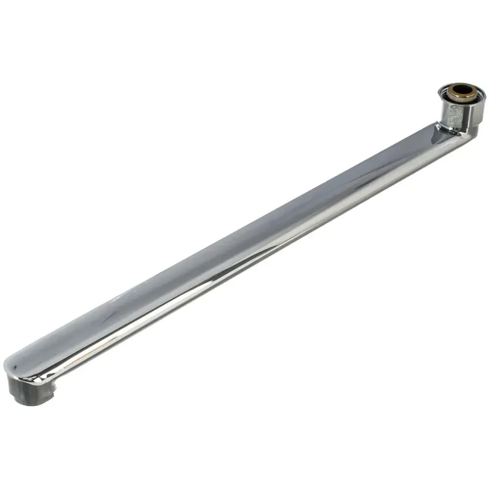 Корпус смесителя изготовлен из силумина, который отличается хорошей твердостью и стойкостью к окислению. Длинный поворотный излив можно использовать как для ванны, так и для умывальника — это будет хорошим решением для малогабаритных комнат.