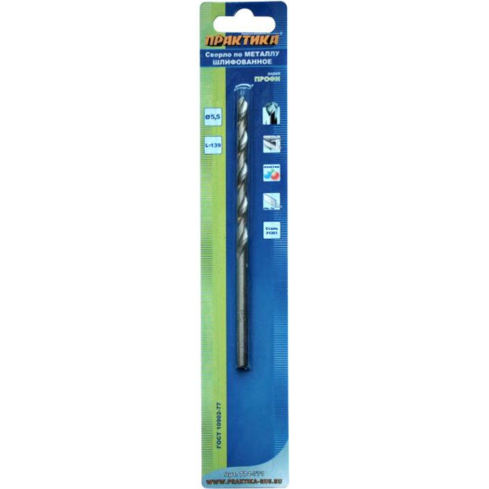 Технические характеристики Сверло по мет. ПРАКТИКА 5,5х139 мм (774-771)