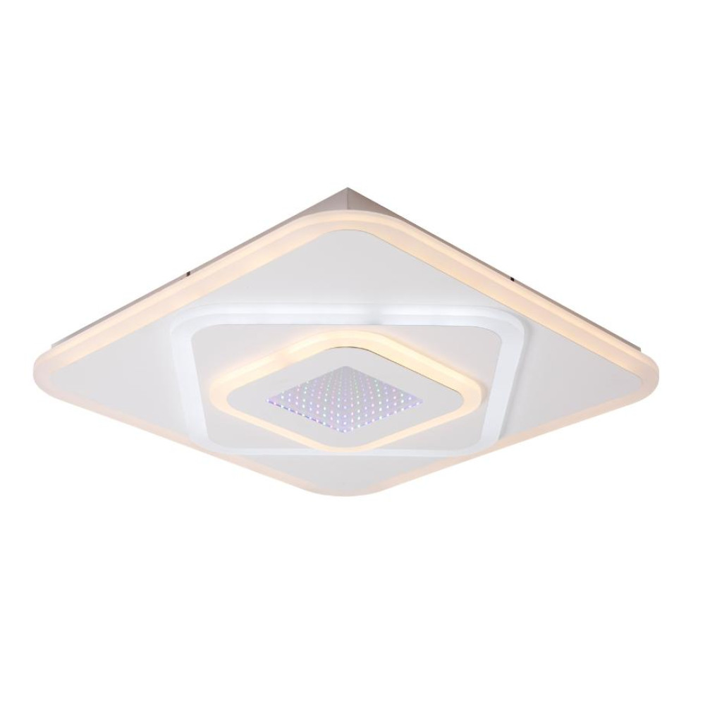 Люстра светодиодная 50520/50WT в современном стиле с пультом дистанционного управления от бренда ЭкономСвет. Каркас выполнен из материала металл, цвет белый. Плафон (светорассеиватель) выполнен из материала акрил; цвета: белый и 3d. Встроенные LED модули на 136 Вт осветят до 35 м². Есть регулировка цветовой температуры и яркости.