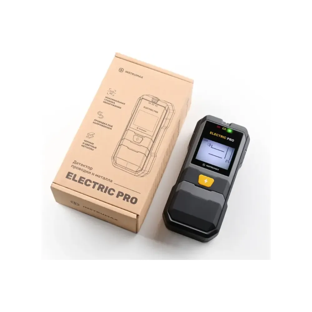 Детектор металла, проводки и дерева INSTRUMAX ELECTRIC PRO предназначен для обнаружения в стенах, полах и потолках цветного и черного металла, проводов под напряжением и деревянных конструкций посредством электрического сигнала. Компактный профессиональный прибор, наличие которого поможет избежать перебития кабеля или поймать арматурный пояс. Функция поиска только электрической проводки позволит точно определить ее местоположение и при этом не реагировать на другие обьекты (арматуру). Автоматическая калибровка во всех режимах.