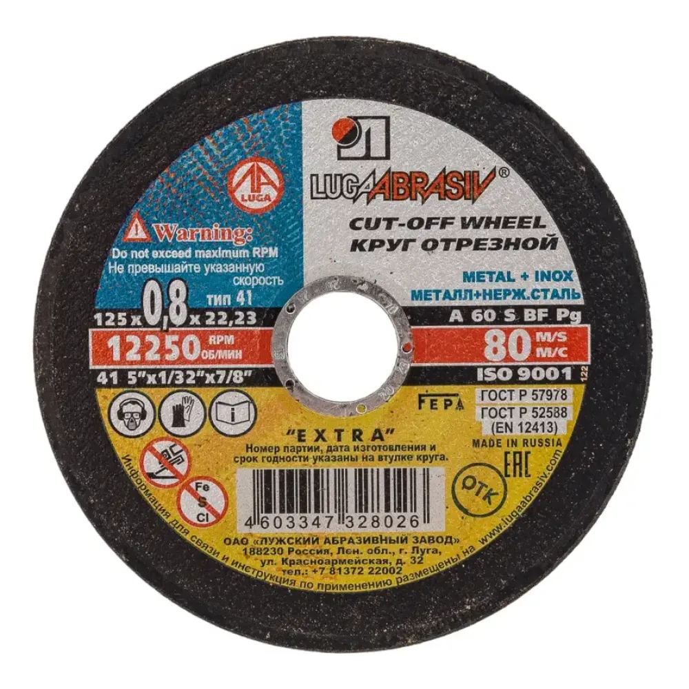 Технические характеристики Круг отрезной ЛУГА 125х0,8 мм