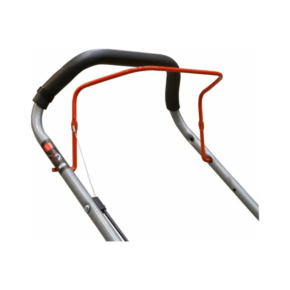 Ручная косилка для травы на колесах работает на обычном бензине АИ-92. Колеса диаметром 6 дюймов обеспечивают отличную проходимость даже на участках со сложным рельефом.