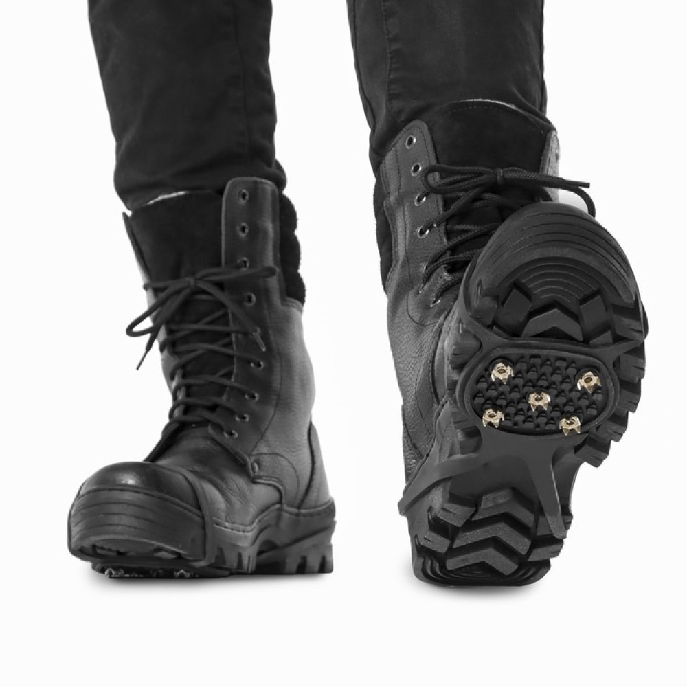 Ледоступы 5 шипов размер 36-47 4262517 надёжно крепятся на обувь благодаря резиновым петлям и предотвращают скольжение при ходьбе. Это особенно актуально при гололедице, когда риск получить травму при падении значительно возрастает.