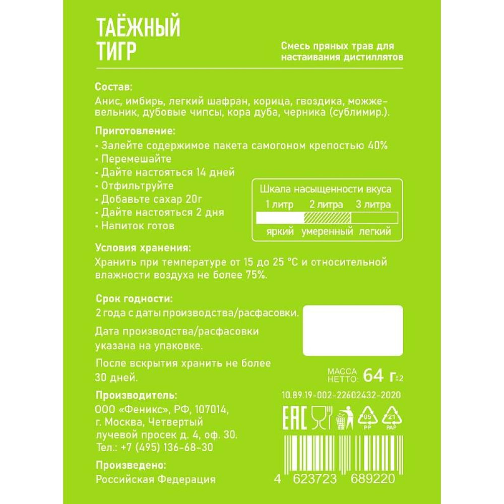 Набор приправ GUSTO Таежный тигр придает напитку сбалансированный, мягкий вкус, в котором элегантная горечь сочетается с нюансами пряных трав и сладковатыми оттенками.