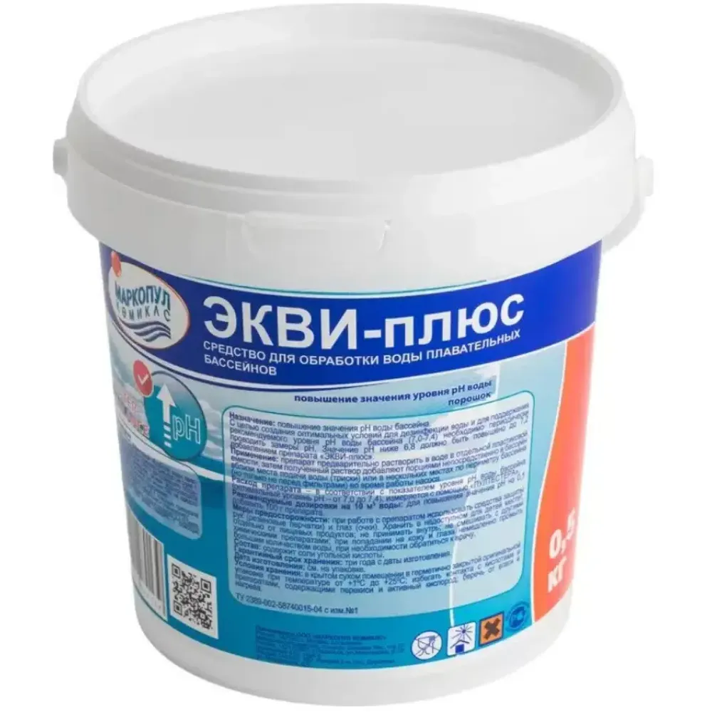 Технические характеристики Гранулы Маркопул Кемиклс ЭКВИ-ПЛЮС 500гр для повышения уровня рН воды М30