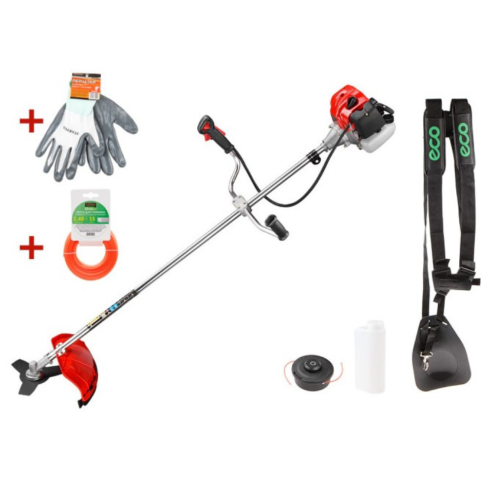 Триммер ECO GTP-145N используется для стрижки газонной травы. Удобная и эргономичная рукоятка триммера изготовлена в виде велосипедного руля и может устанавливаться в различных положениях, это обеспечивает максимальную управляемость и уменьшает нагрузку на опорно-двигательный аппарат оператора. Мотокоса снабжена праймером для предварительной подкачки топлива, который облегчит запуск мотора.