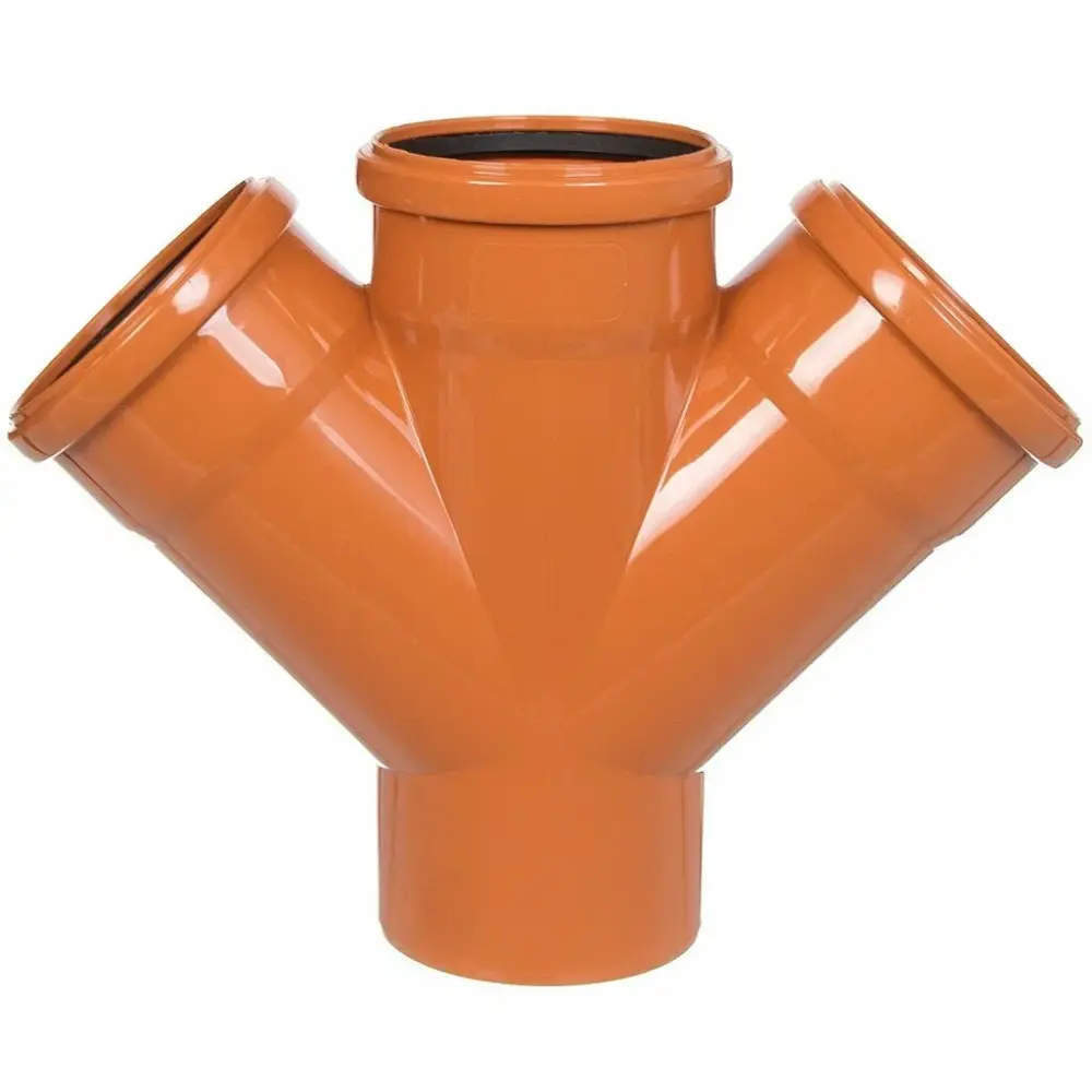 Крестовина для наружной канализации, изготовленная из полипропилена PP-H, используется в безнапорных трубопроводах и обладает кольцевой жесткостью SN4 для устойчивости к нагрузкам при подземной прокладке. Она подходит как для наружных, так и для внутридомовых канализационных систем, устойчива к ударам и низким температурам. Гладкие стенки предотвращают налипание отходов, что снижает вероятность засорения и продлевает срок службы. Раструбное соединение гарантирует герметичность до 0,5 атмосферы. Размеры составляют 110 мм в диаметре, а углы между патрубками - 45 градусов.