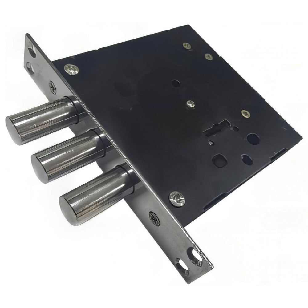 Замок врезной MLG С-3р 2514 предназначен для металлических дверей. Засов из трех цилиндрических ригелей. Материал замка и ключей - сталь, антикоррозийная обработка защищает механизм при неблагоприятных условиях эксплуатации, увеличивая срок службы. Лицевая планка в форме прямоугольника аккуратно обрамляет отверстие для ключа.