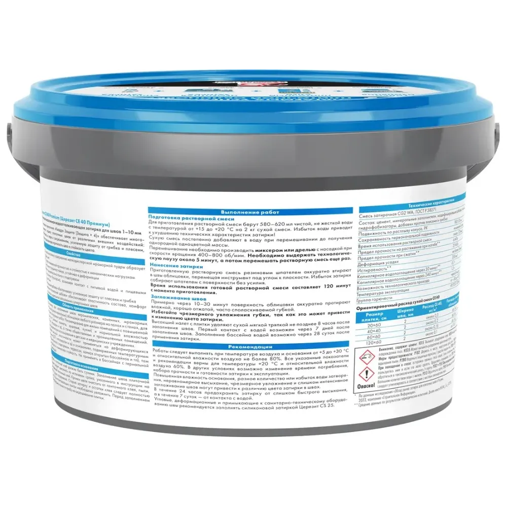 Технические характеристики Затирка Церезит СЕ40 2кг эл водоот. Натура